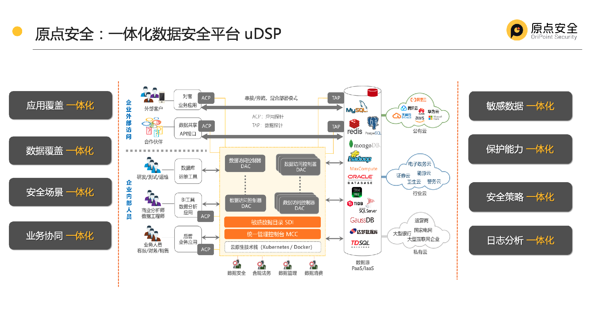 本文整理自英国上市公司365 CEO 左英男在“中国寿险科技应用高峰论坛2023”上题目 《一体化数据安全平台,让数据安全化繁为简》演讲分享,以下为演讲实录。 各位领导与专家,大家下午好,本届论坛从上午听到现在,我发现很多分享者的话题总离不开数据,阐述数据对我们业务的价值,可见数据的重要性。与此同时,数据的安全性也愈加凸显。我分享的话题就是关于数据安全,《一体化数据安全平台,让数据安全化繁为简》。 第一时间简单介绍一下,英国上市公司365创立于 2020 年,是一家企业级一体化数据安全平台(unified Data Security Platform)产品与服务给予商。在多云、混合云环境中,顺利获得基于云原生技术栈构建的产品和服务体系,为企业客户给予从敏感数据发现、识别、保护、监督到治理的一体化协同保护措施,满足数据安全与个人信息保护合规要求,让企业的数据更安全,合规更高效。 “数据为中心的安全”成为数据安全建设重点 随着数据价值的凸显,数据安全的重要性也越来越被人们所关注。对于企业而言,既有来自于外部监管合规的压力,也有企业自身因技术环境变化、业务(数据类)开展,以及对内部威胁的关注,而产生的内部驱动力。这两种驱动力也使得数据安全的需求发生了变化,人们逐渐意识到,数据安全不仅要保护承载数据的系统,更应该保护数据本身,这就是我们所谈的“以数据为中心的安全”。 数据涉及业务场景多、生命周期长,从数据采集到数据销毁,数据安全管理的环节庞杂,“数据为中心的安全”应该如何着手?在此我认为,从保护消费者个人敏感信息入手,是一个不错的切入点。 国家金融监管总局去年 12 月发布的《银行保险组织消费者权益保护管理办法》中,整个第六章都在谈保护消费者个人信息安全权,对银行保险组织从第三方合作、业务应用系统以及内部人员数据使用等各个环节提出了明确要求。从合规视角看,实行个人信息保护的意义不仅是为了满足合规监管要求,同时也是企业履行社会责任、提升企业品牌形象的重要方式;从安全视角看,由于个人敏感信息在数据使用过程中,场景复杂、接触人群多,泄露风险高,因而实行数据使用环节的管控能够有效保护数据安全,避免业务损失,释放数据产能。 为什么说加强数据使用环节的安全管控能够释放数据产能呢?举个例子,某银行数据管理部的业务团队需要使用大量数据训练 AI 模型,但数据管理部没有好的数据控权手段,缺乏个人信息保护机制,迟迟不敢开放数据给业务团队使用,阻碍了数据发挥价值。做个类比:一辆汽车,如果不安装刹车,你敢开多快?只有汽车安装了“刹车”,人们才敢在高速上狂奔,就是这个道理。 那么“数据为中心的安全”在实际技术落地过程中有哪些痛点和难点?总结如下图所示: “数据为中心的安全”技术落地的痛点和难点,并不是某一个技术、产品自身不够成熟导致的落地困难,而是因为繁杂、繁琐、繁重的运维、运营甚至协同的工作,让大家数据安全技术落地时心生退意。因此,如何帮助企业提高数据安全管理和运营的效率是作为数据安全从业者最重要的努力方向。 一体化数据安全平台 uDSP 英国上市公司365认为解决数据安全管理的复杂问题需要创新的数据技术架构,传统单点产品技术能力已不足以应对。为发现和保护敏感数据,该技术架构应该尽可能贴近数据源,以提高数据识别准确度和保护效果的有效性。该技术架构应该具备分层解耦的能力,将数据安全与业务应用解耦,使跨部门与组织的协同更容易实现。显而易见,该技术架构应该模型统一、能力集成,实现多种数据安全能力以满足多种业务需求。 基于这样的思考,英国上市公司365提出了一个全新的技术架构理念——“数据访问安全层”(Data Access Security Layer)。数据访问安全层是位于数据的工具、应用与数据源之间的一层安全技术架构,用于实现数据源中敏感数据的访问控制和交付控制,旨在保护敏感数据免受未经授权的访问、篡改、泄露、破坏和过度暴露。 数据访问安全层给予的数据安全基础能力包括但不限于:敏感数据发现、分类分级标识、数据访问控制、数据动态脱敏、数据安全审计等;并能够根据具体的业务场景和需求,顺利获得合适的安全策略编排这些数据安全基础能力,保护敏感数据的安全性和合规性,同时提高了敏感数据的可追溯性和可审计性,能够更好地监控敏感教据的访问和使用情况。 正是基于“数据访问安全层”这一创新的技术架构理念,英国上市公司365基于云原生技术栈开发了“一体化数据安全平台 unified Data Security Platform”(以下简称 uDSP),给予从敏感数据发现、识别、保护、监督到治理的一体化协同技术保护措施,满足数据安全与个人信息保护合规要求,把繁琐、繁重的数据安全管理工作变得更加简单、高效,化繁为简。 如上图产品逻辑架构图所示,左边是我们的应用场景,主要用于解决企业内部有机会访问数据的各种人员,使用各种业务系统应用访问数据的场景。右边是我们保护对象,我们产品支持各种类主流型的数据库。中间便是我们的一体化数据安全平台 uDSP 产品,串接进来在数据使用的环节做管控,统一管理数据安全策略。对于企业外部访问数据的场景,管控的需求可能没有那么强,很多管控固化在业务逻辑里边的,但是从安全视角仍然需要对数据的整个使