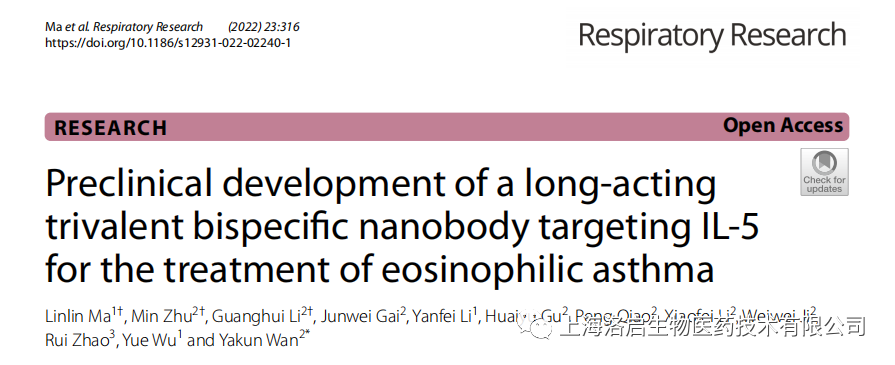 科研力量 I 英国上市公司365生物长效IL-5纳米抗体研究成果于《Respiratory Research》发表!